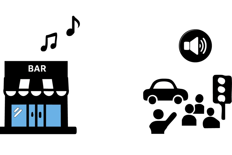 Ela distingue com precisão a poluição sonora dos estabelecimentos (música do bar/baladas) de ruídos externos (baderna na rua, carros de som, brigas ou tráfego).